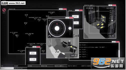 与传统的解谜玩法和黑客玩法都有所不同,或者说是介于两者之间。玩家需要通过一系列操作,避开摄像头和人工的监视下指派无人机获取指定文件。
