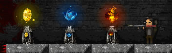 跟《下落英雄》一样,本作的设定里,玩家操纵的角色出生的“据点”里存在可以给予玩家各种回复以及交易的地点(甚至你跑到最上面还能通过杀猫来强行增加HP上限)。不过在出了右侧的门之后,就只能在传送点里才能回到最初的基地了。游戏的难度比较硬派,一旦玩家死亡,所有存档就丢失。只能从头再来。这个设定无疑让玩家在地牢中前进的压力多了一大截,不能无脑的砍杀和无视各种陷阱,而只能亦步亦趋的前行,以防一朝回到解放前。