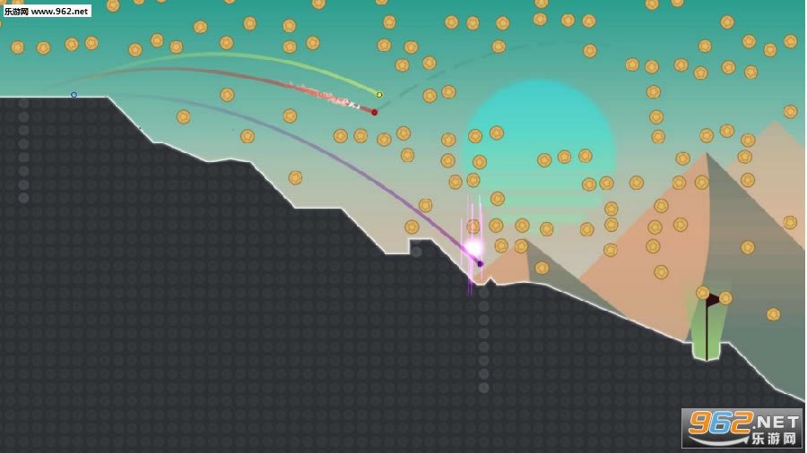 这是一款参考真实物理学定理的极简2D高尔夫运动,我们将在游戏中控制击球的力度,躲避空中的障碍物,或者说是利用地形的特点达到进球的目的,在这个程序自动生成的地图中,空中有许多的金币、爆炸物、buff、debuff增加游戏的可玩性,在多人游戏模式中我们的球在空中是可以互相撞击的,这是我们必须要注意的事情!在游戏中我们的球可能会在接到什么BUFF的时候变成一些看不懂的胴体,而这些物体的形状会影响触碰到地形的时候产生的摩擦力,唔...可能讲的有点过于复杂了。