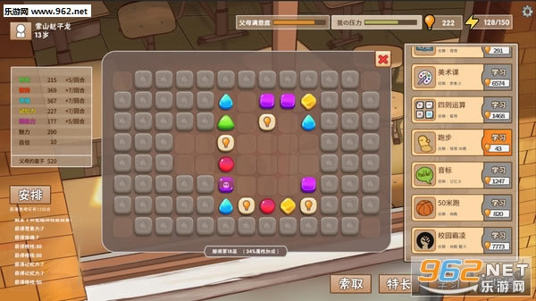 【日程安排】玩家需要平衡好学习和娱乐两项,前者会提高父母满意度和自身压力,后者相反。若平衡不好,会遭到父母的责罚,自身压力过大会出现心理问题,对属性有削减作用。同时,安排完日程后,也会遇到很多特殊事件,回味与父母的点点滴滴,以及这些小事带来的影响。
