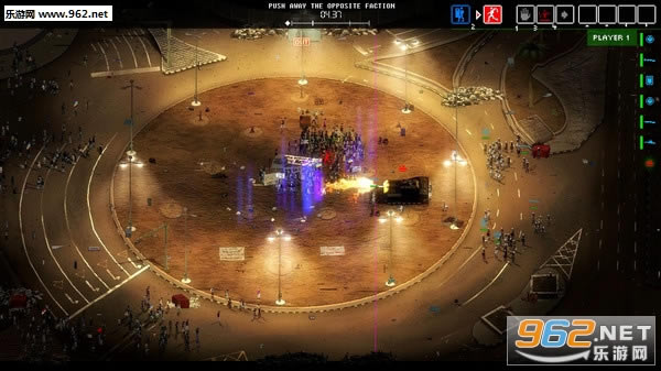 也可以用暴力模式,扔燃烧瓶,炸弹,石头,每个队伍都是有士气的,而且如果一个队伍被激怒过度,可能就会非常暴力,这样会有利有弊。