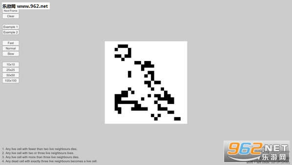 游戏是一个零玩家游戏。 游戏的目的是选择一个初始状态并观察它的演变过程。 不同尺寸的地图和trully无限可能性。