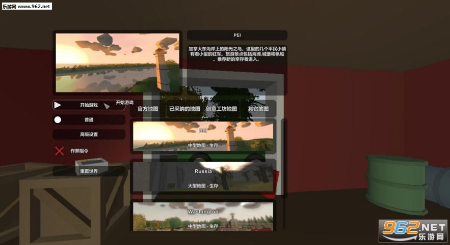 有5个正式开发和1个策划的社区创建沙盒地图,有各种各样的位置等你发现: