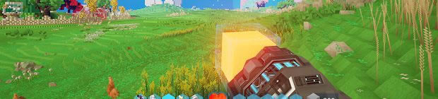 方块发射器是一个超棒的武器,它可以承载游戏中的任何方块并把他们扔向敌人。不同的方块的攻击效果也会有所不同。除了攻击,如果你将光块往山洞的墙上扔去,它可以照亮山洞。
