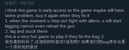 这游戏,想法很好,背景故事很庞大,外星人和人类的战斗啊,可以说是十分有想法的一款游戏,但是技术实现实在是没办法让玩家满意,如果去掉众多的bug,再优化一下游戏性的话,应该是一个不错的联机游戏,至少可以比现在强很多很多……