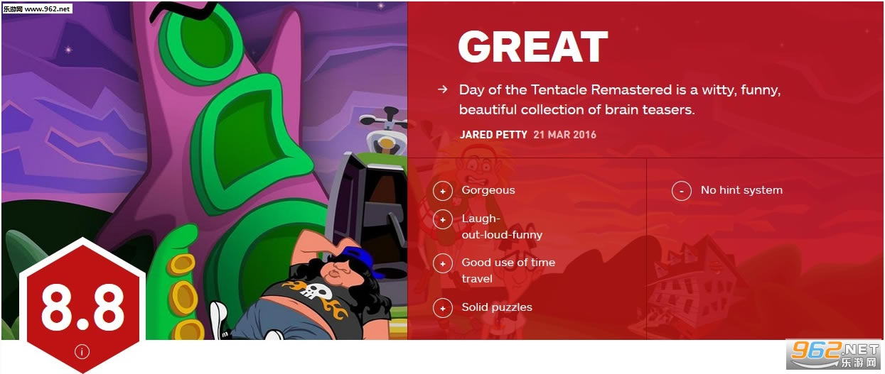 1993年的《触手也疯狂》是一款非常有趣的指向点击类冒险游戏,而如今的重制版依旧笑料十足,游戏中充满了各式的笑料和丧心病狂的设定,相信这样一款有趣的休闲游戏足够满足各类玩家的口味。IGN给出了8.8的高分。