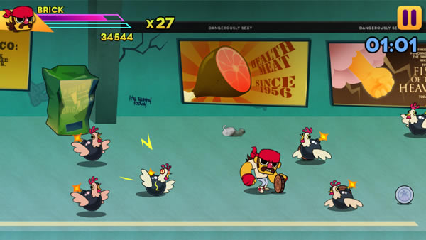 接下来看看游戏的道具系统和技能体系,作为这样一个小体量的动作作品,本作也算有不错的表现。磁铁等道具跟游戏紧密配合,完全服务于角色的需求。而技能方 面,各种与手势搭配使用的技能无论在表现形式,还是在实用性上,都有很好地展示,不过,这些都需要玩家购买才能使用。另外,游戏中的各色角色也为游戏增添 不少趣味,比如,爆炸鸡就非常有趣。