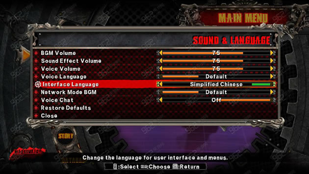按“U”键确定之后,会出现如下界面,选择“Interface Language”-“Simplified Chinese”
