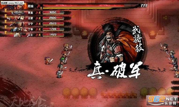5、新增Boss战,由敌方为1名头领+5名部将,Boss超长的HP条和未知的HP值。