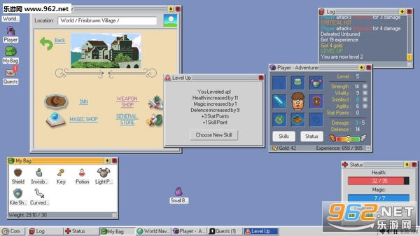 王道(Kingsway)是一个不同寻常的rpg游戏,你会进入一个虚拟的电脑操作系统,通过这个系统,你可以管理你的冒险生涯。游戏的每一个元素都是操作系统的一部分,敌人和陷阱是弹出窗口,背包是文件的文件夹,你的项目和任务是电子邮件。每一次进入游戏的时候世界都是随机生成的,并且死亡是永恒的哦!可千万不要大意。