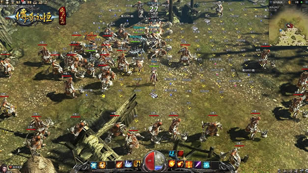 此时,玩家会在战场的不同区域看到正在奋力厮杀的五名角色:战士、法师、刺客、弓手、道士。
