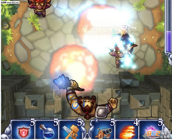 通过选定魔法种类来投掷火球、召唤闪电或是大海的力量来打击怪物部落。