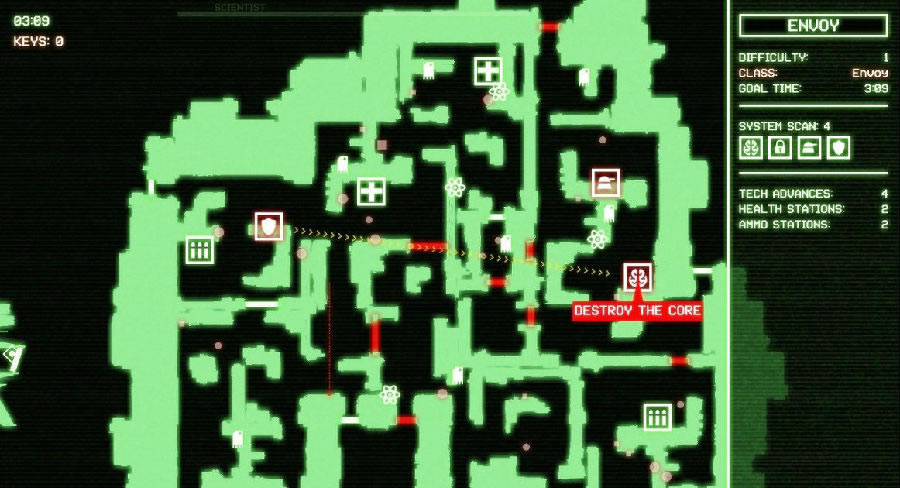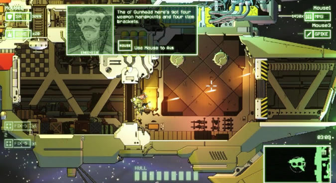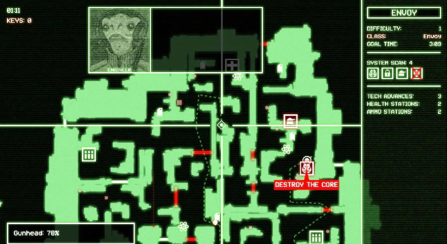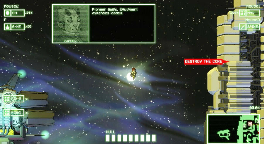 《Cryptark》这款游戏是一款太空射击类的roguelike游戏,说是射击,其实玩法类似于前一阵子小火过一把的地牢之魂(dungeon souls),最大的特色就是百变的武器系统,游戏中有N个大类的武器,大类武器中每把武器又有自己的特点(穿透、跟踪、射速、延时爆炸、弹射等等等等),每次出战都可以选择四种(好像是吧)心爱的武器,打造出只属于你自己的百变机甲。同时由于roguelike的特性,游戏拥有随机的地图,敌人和各种中枢系统(护盾、修理、门锁等等,各自有不同的串联功能,也要求有不同的打法),每个关卡带有额外的挑战任务更是增加了游戏的乐趣~