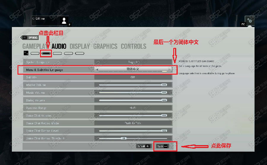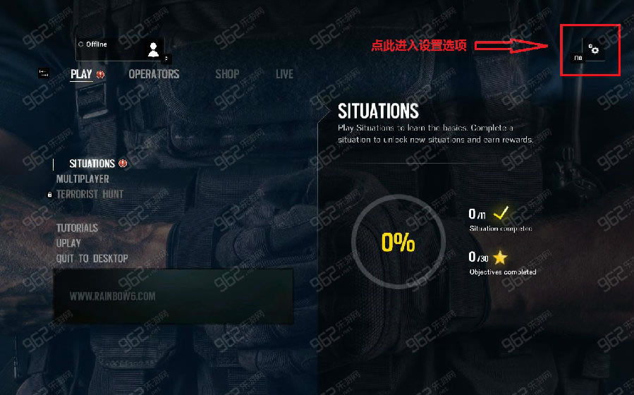 1、进入游戏之后在菜单界面点击右上角小齿轮——选择OPTIONS