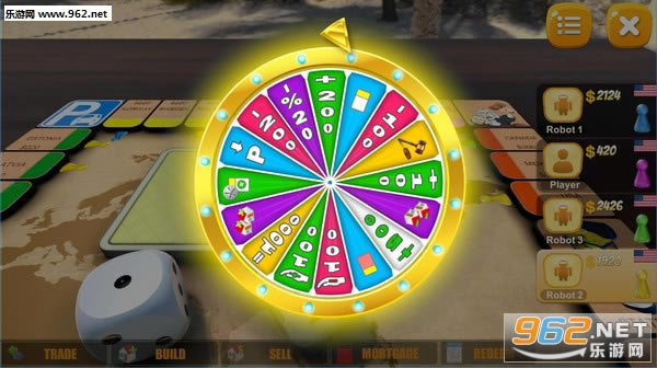 交易土地,建造房屋,赢得拍卖,以及惊险刺激大转盘,在俄罗斯轮盘里爽一把,开心才是最重要的。