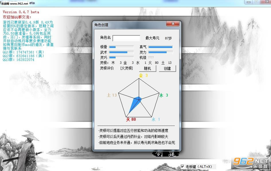 灵根均值80[成功率 70%]=结丹战力+50:[HP+50、MP+140、六围各+30]!