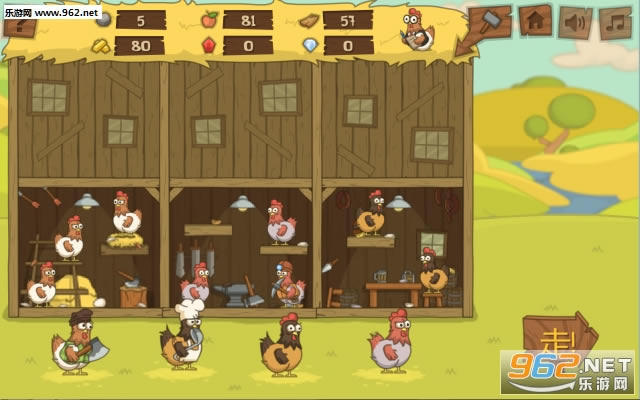 这个游戏一共有28关,26只鸡可选,每只鸡都有技能(必须是一级或以上)。有6种物资,点鸡舍顶的鸡可以换物资,可以换来红宝石和钻石(但是比较贵)却不能用他们换其他东西。玩的时候要注意鸡的配合还有鸡得物资的百分比(太低没用)。前期不要打怪,后期打怪是重点。打石头去矿洞地带,打木头去那些暗黄色的关卡(打野人),食物、金币、红宝石和钻石去打怪会有好多。还有闯关时可以躲避(所有)不过每次闯关有固定的使用次数(不管你一次过了几关)最后告诉大家一个较好的配合:加血鸡(15级)和加快技能冷却鸡(20级)其他随便。。。