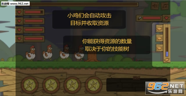 小鸡门会自动攻击目标并收取资源。而你能获得的资源取决你的技能树。