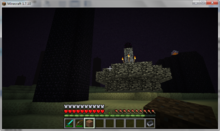 是一个突兀的、空旷的由末地石所组成的平原,带有末影水晶的黑曜石柱和大量的末影人,以及末影龙。