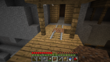 截面3×3的由栅栏与木板)支撑的巷道,十字路口,楼梯,运输矿车,蜘蛛网与铁轨也在巷道内随处可见。