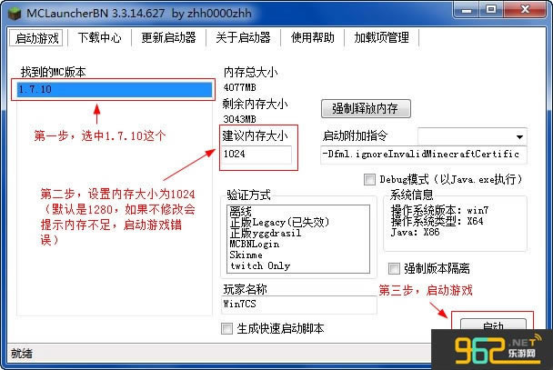 这次我的世界1.7.10启动器采用的是MCLauncherBN版的,玩家进游戏前需要进行简单的设置,具体操作方法如下: