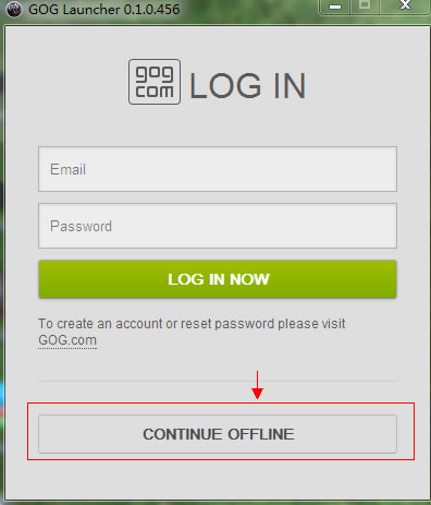 如果进游戏时,会弹出登录GOG账户,玩家只需选择离线运行即可,点击“CONTINUE OFFLINE”